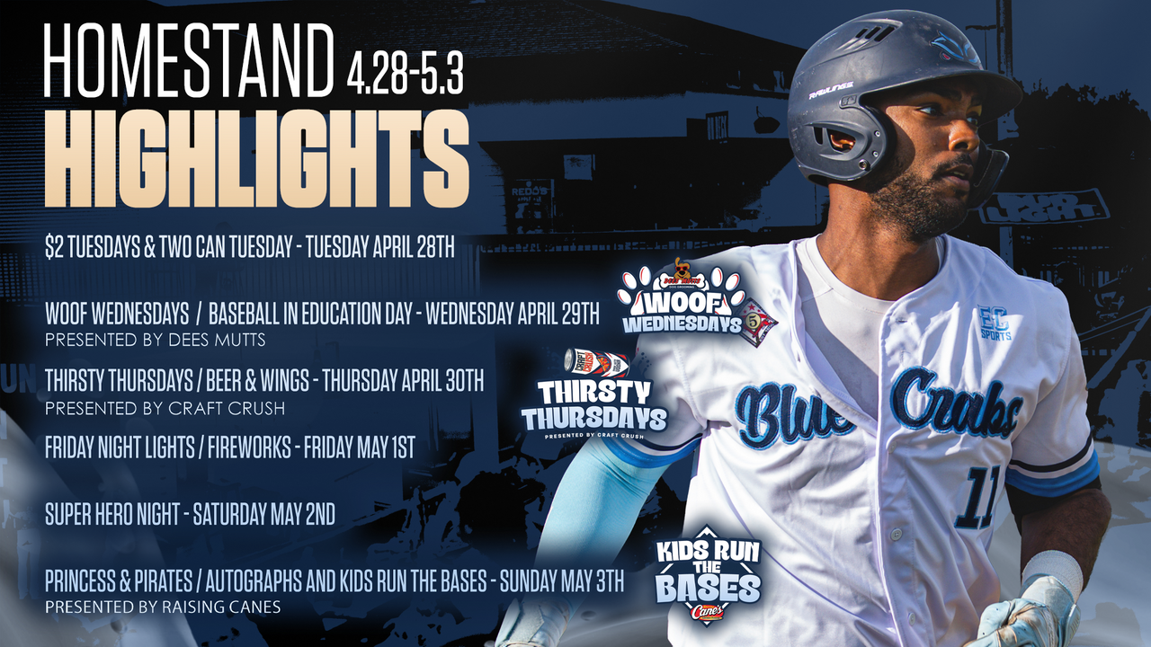 It’s a full week of fun at the ballpark as the Blue Crabs take on the High Point Rockers! From great promotions and unbeatable value to family-friendly experiences and postgame fireworks, there’s something for everyone all week long.